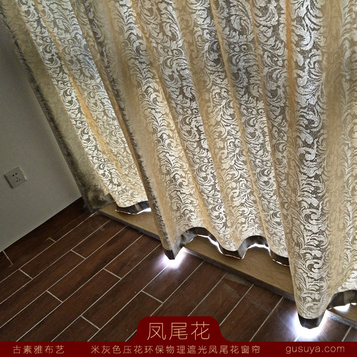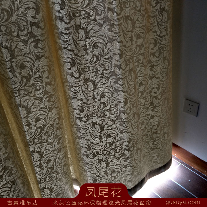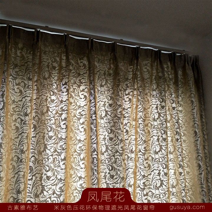 寓意吉祥如意凤尾花窗帘幸福美好愿,涤棉单面压花布水印效果,三层纺织遮光约80%,适合经济适用房经济实惠窗帘、出租屋落地窗飘窗窗帘、公司办公室布艺窗帘、仓库遮挡阳光窗帘、学校防晒窗帘、医院遮挡隐私窗帘、宿舍窗帘
